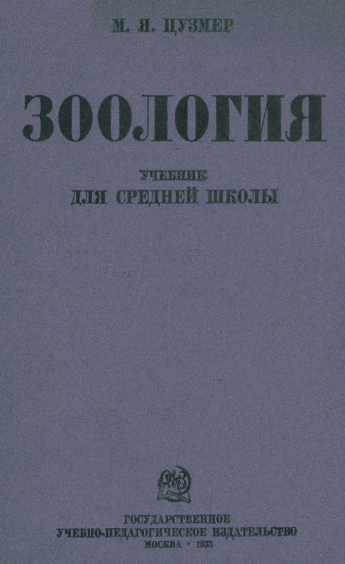 Быховский Б. Е. и др. Зоология: учебник для 6—7 классов. — 1978 Быховский Б. Е. Зоология : учебник для 6—7 классов / [Б. Е. Быховский, Е. В. Козлова, А. С. Мончадский, Д. В. Наумов, А. С. Соколов, Н. А. Рыков, П. В. Терентьев] ; под ред. Д. В. Наумова. — 10-е изд.— М. : Просвещение, 1978. — 256 с.Никишов А. И., Шарова И. Х. Зоология: пробный учебник для 6—7 классов средней школы. — 1988 Никишов А. И., Шарова И. Х. Зоология : пробный учебник для 6—7 классов средней школы. — М. : Просвещение, 1988. — 225 с.Цузмер М. Я. Зоология : учебник для 6-7 класса средней школы. — 1933 Цузмер М. Я. Зоология : учебник для средней школы : 6-7 годы обучения. — М. : Учпедгиз, 1933. — 192 с.Шалаев В. Ф., Рыков Н. А. Зоология: учебник для 6—7 классов средней школы. — 1949  Шалаев В. Ф., Рыков Н. А. Зоология : учебник для 6—7 классов средней школы. — М. : Учпедгиз, 1949. — 272 с., [8] л. вкл.