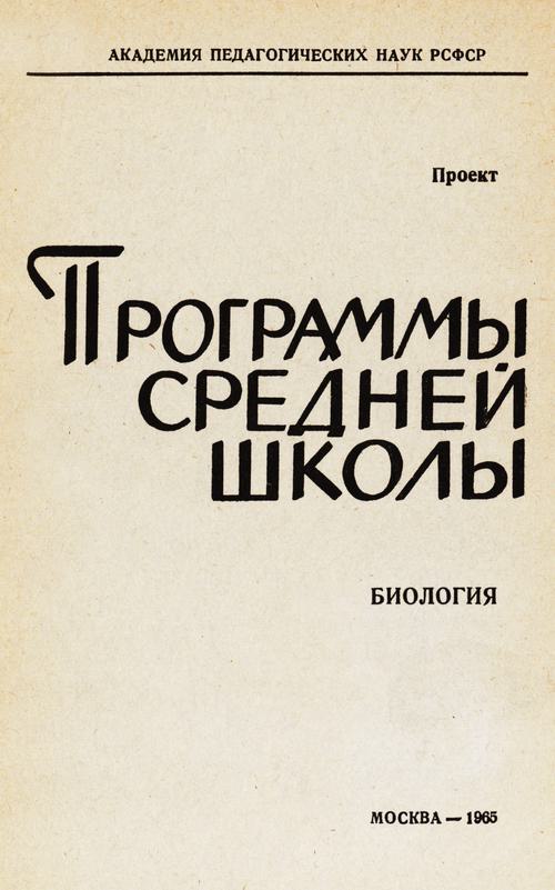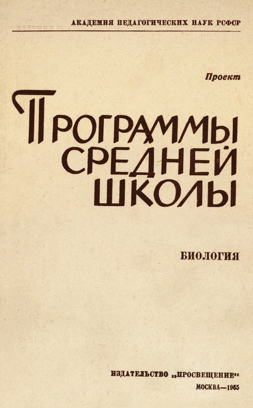 Программа для средней школы. Биология : проект / Акад. пед. наук РСФСР. — М., 1965. — 61 с.