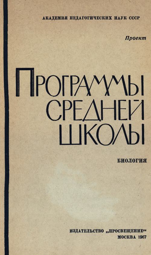 Программа для средней школы. Биология : перераб. проект / Акад. пед. наук CCCР. — М. : Просвещение, 1967. — 79 с.