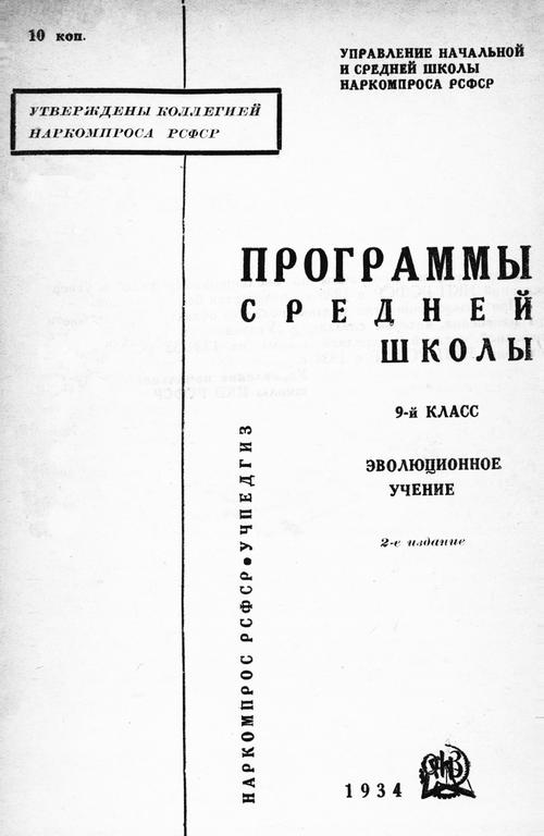 Программы средней школы. 9 класс. Эволюционное учение. — 1934