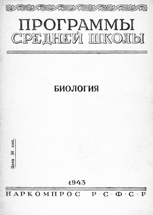 Программы средней школы. Биология / Наркомпрос РСФСР. — [М.], 1943. — 20 с.