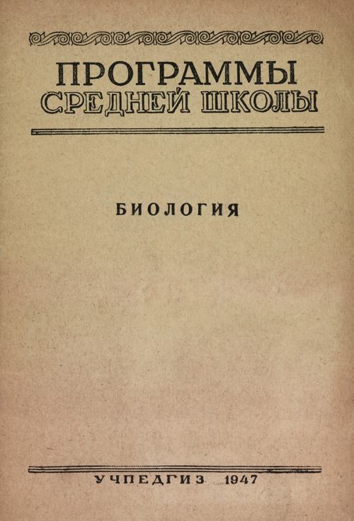 Программы средней школы. Биология. — [М.] : Учпедгиз, 1947. — 20 с.