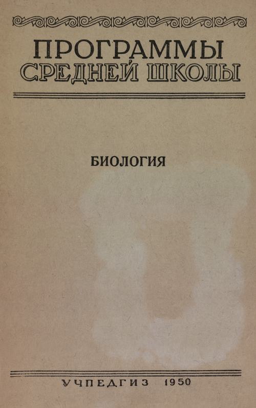 Программы средней школы. Биология / Управление школ Министерства просвещения РСФСР — М. : Учпедгиз, 1950. — 36 с.