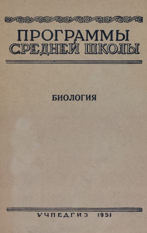 Программы средней школы. Биология / Управление школ Министерства просвещения РСФСР — М. : Учпедгиз, 1951. — 40 с.