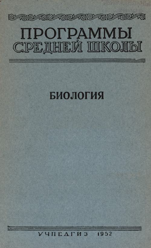 Программы средней школы. Биология / Управление школ Министерства просвещения РСФСР — М. : Учпедгиз, 1952. — 40 с.