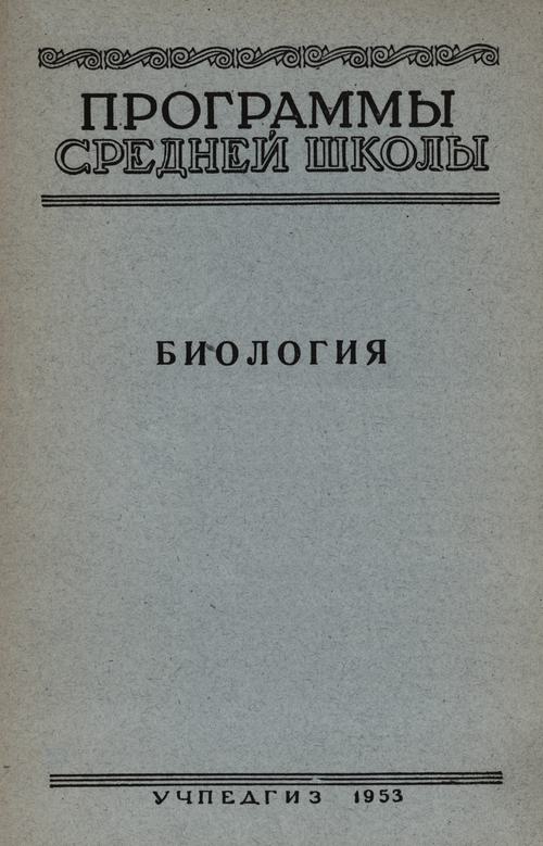 Программы средней школы. Биология / Управление школ Министерства просвещения РСФСР — М. : Учпедгиз, 1953. — 40 с.