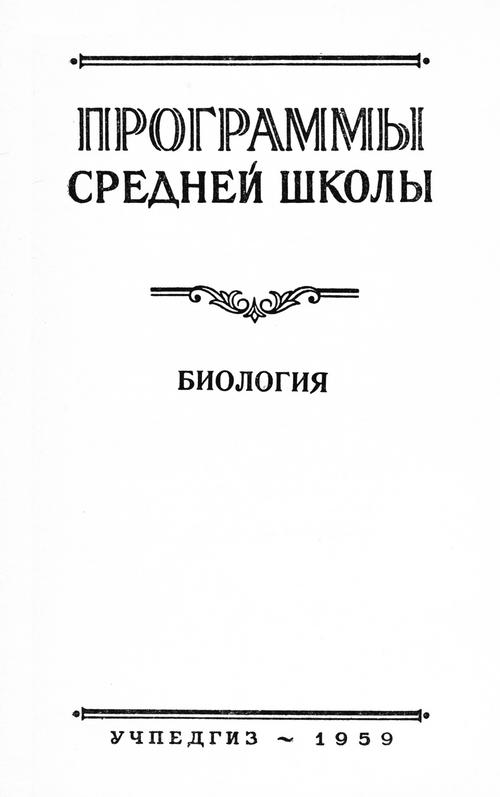 Программы средней школы. Биология. — [М.] : Учпедгиз, 1959. — 55 с.