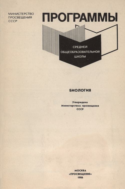 Программы средней общеобразовательной школы. Биология / Министерство просвещения СССР. — М. : Просвещение, 1986. — 49 с.