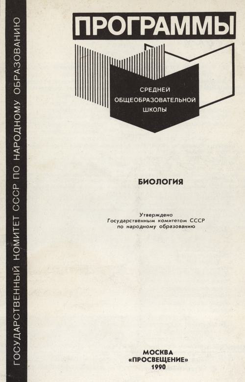 Программы средней общеобразовательной школы. Биология / Государственный комитет СССР по народному образованию. — М. : Просвещение, 1990. — 47 с.