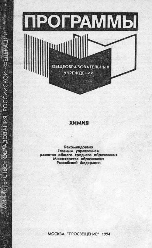 Программы общеобразовательных учреждений. Химия / Мин-во образования РФ ; сост.: Н. И. Габрусева. — М. : Просвещение, 1994. — 64 с.