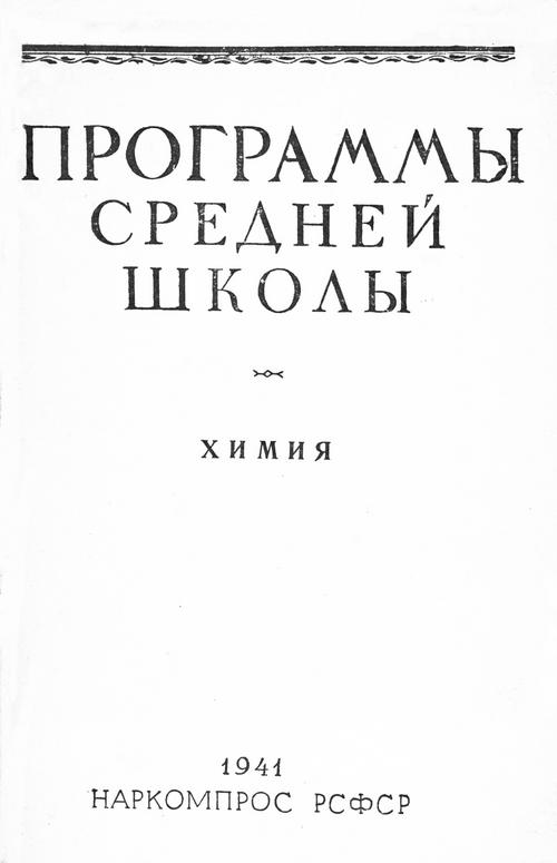 Программы средней школы. Химия. — [М.] : Наркомпрос РСФСР, 1941. — 24 с.