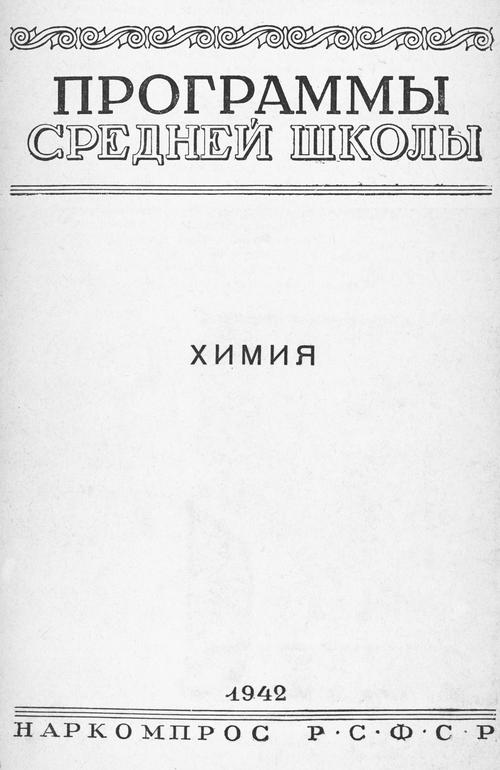 Программы средней школы. Химия. — [М.] : Наркомпрос РСФСР, 1942. — 23 с.