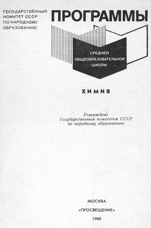 Программы средней общеобразовательной школы. Химия / Государственный комитет СССР по народному образованию. — М. : Просвещение, 1988. — 46 с.