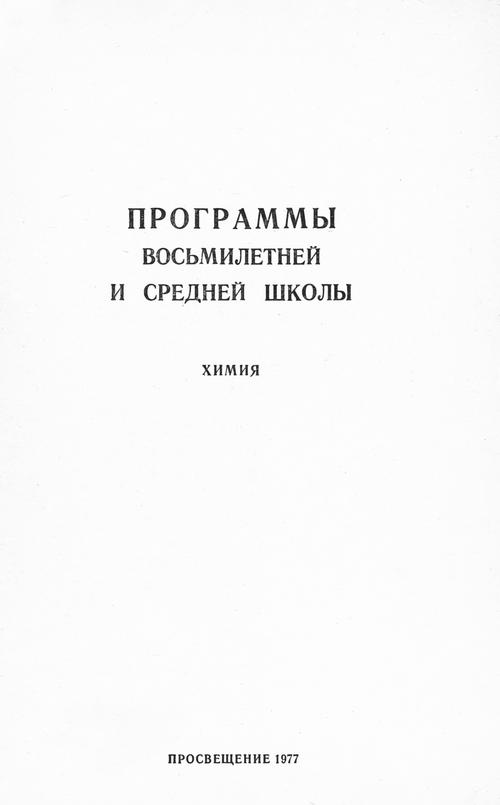 Программы восьмилетней и средней школы. Химия / Министерство просвещения СССР. — М. : Просвещение, 1977. — 38 с.