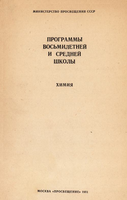 Программы восьмилетней и средней школы. Химия / Министерство просвещения СССР. — М. : Просвещение, 1981. — 32 с.