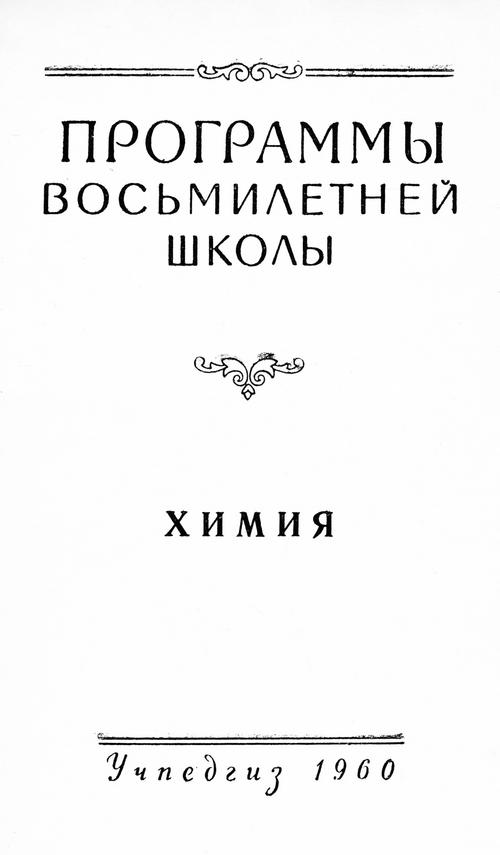 Программы восьмилетней школы. Химия / Министерство просвещения РСФСР — М. : Учпедгиз, 1960. — 20 с.