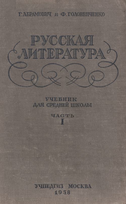 Абрамович Г. Л., Головенченко Ф. М. Русская литература: учебник для 8-го и 9-го класса средней школы. Ч. 1. — 1938