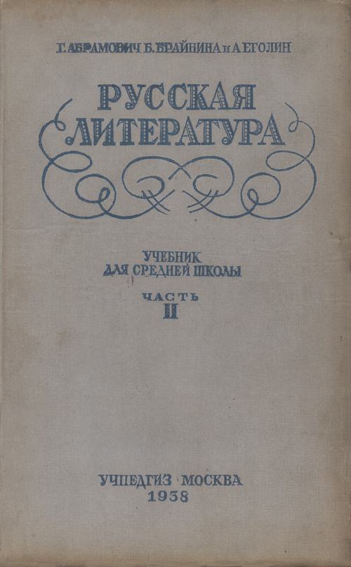 Русская литература : учебник для 9-го класса средней школы. — Ч. 2 / Г. Абрамович, Б. Брайнина, А. Еголин. — Изд. 4-е, доп. — М. : Учпедгиз, 1938. — 208 с.