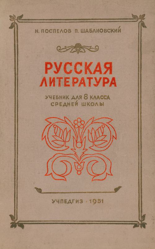 Поспелов Н. Н., Шаблиовский П. В. Русская литература: учебник для VIII класса средней школы. — 1951