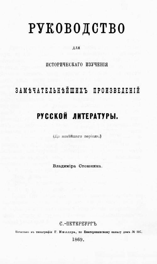 Стоюнин В. Я. Руководство для исторического изучения замечательнейших произведений русской литературы. — 1869