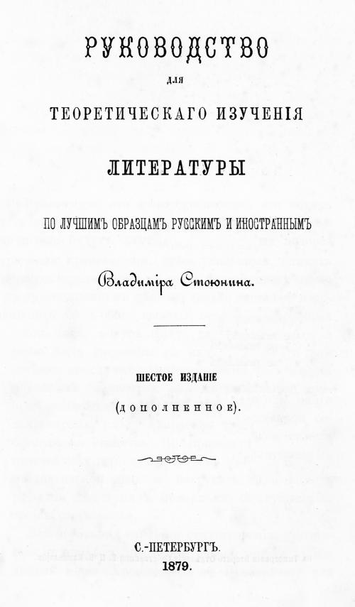 Стоюнин В. Я. Руководство для теоретического изучения литературы по лучшим образцам русским и иностранным. — 1879