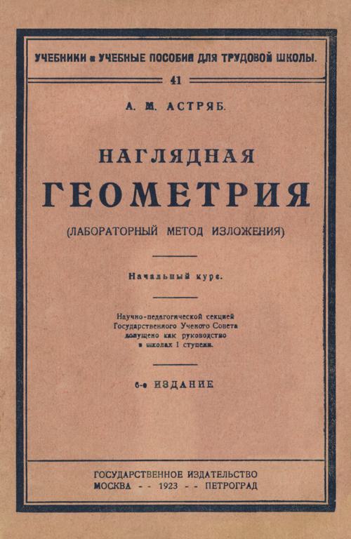 Наглядная геометрия : (лаборат. метод изложения) : первая ступень : начальный курс геометрии. — 6-е изд. — М. ; Пг. : Госиздат, 1923. — 160 с. — (Учебники и учебные пособия для трудовой школы ; 41).