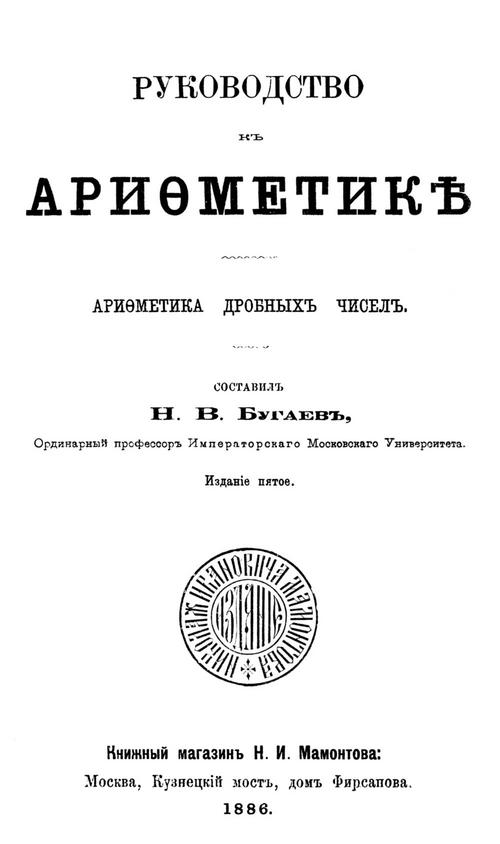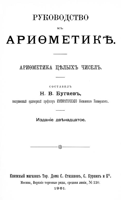 Бугаев Н. В. Руководство к арифметике. Арифметика целых чисел. — 1901
