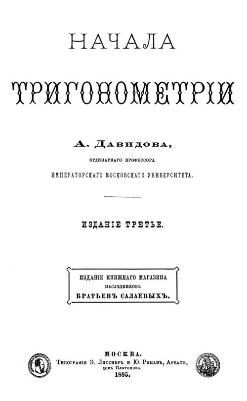 Давидов А. Ю. Начала тригонометрии. — 1885