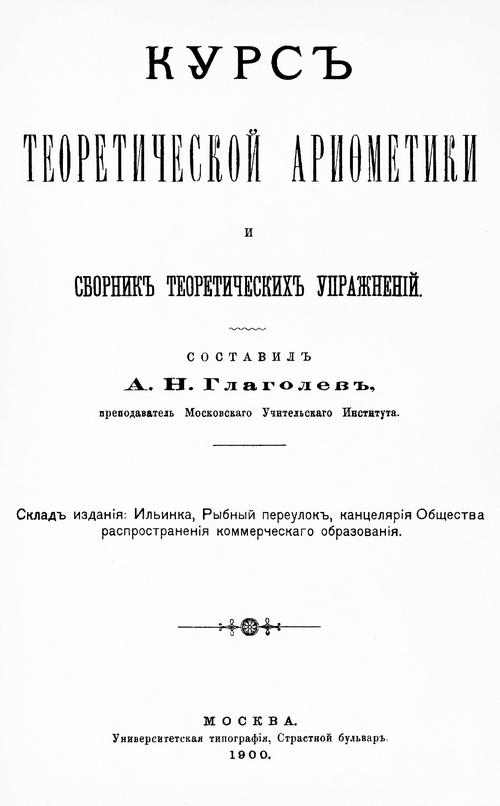 Глаголев А. Н. Курс теоретической арифметики и сборник теоретических упражнений. — 1900