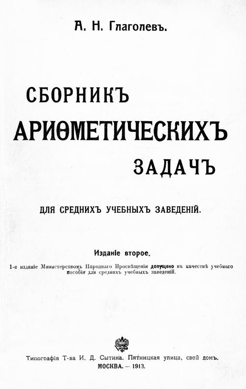 Глаголев А. Н. Сборник арифметических задач для средних учебных заведений. — 1913