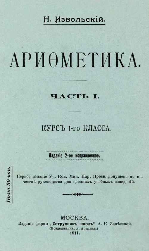 Извольский Н. А. Арифметика. Ч. 1. — 1911