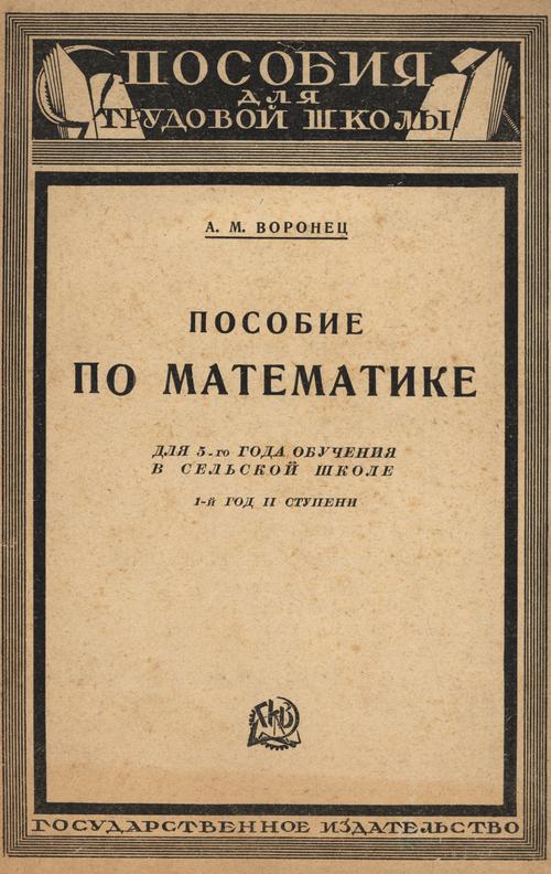 Воронец А. М. Пособие по математике для 6-го года обучения в трудовой школе. — 1928