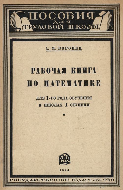 Воронец А. М. Рабочая книга по математике для 1-го года обучения в школах I ступени. — 1926