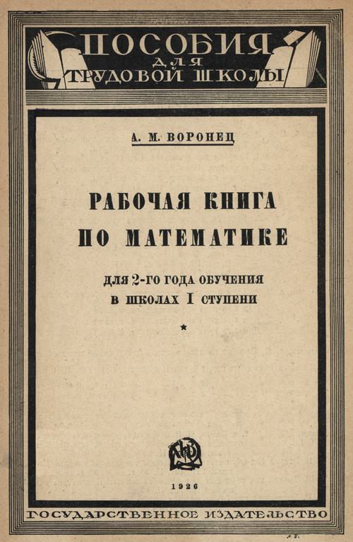 Воронец А. М. Рабочая книга по математике для 2-го года обучения в школах I ступени. — 1926
