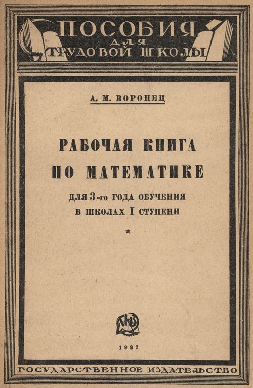 Воронец А. М. Рабочая книга по математике для 3-го года обучения в школах I ступени. — 1927