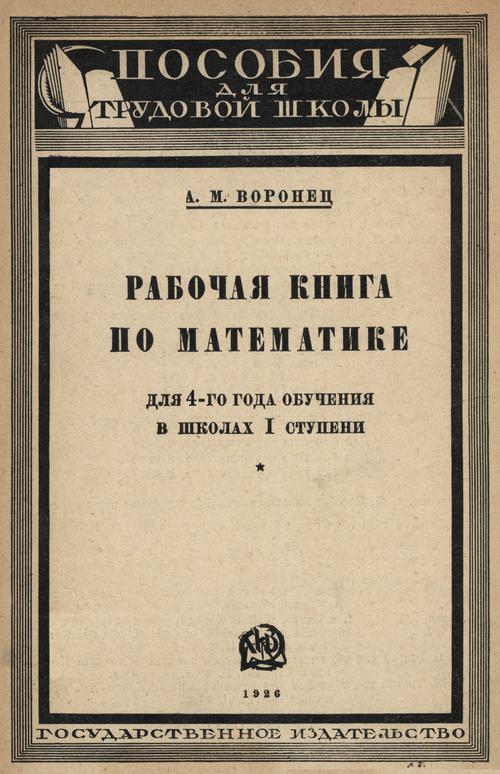 Воронец А. М. Рабочая книга по математике для 4-го года обучения в школах I ступени. — 1926